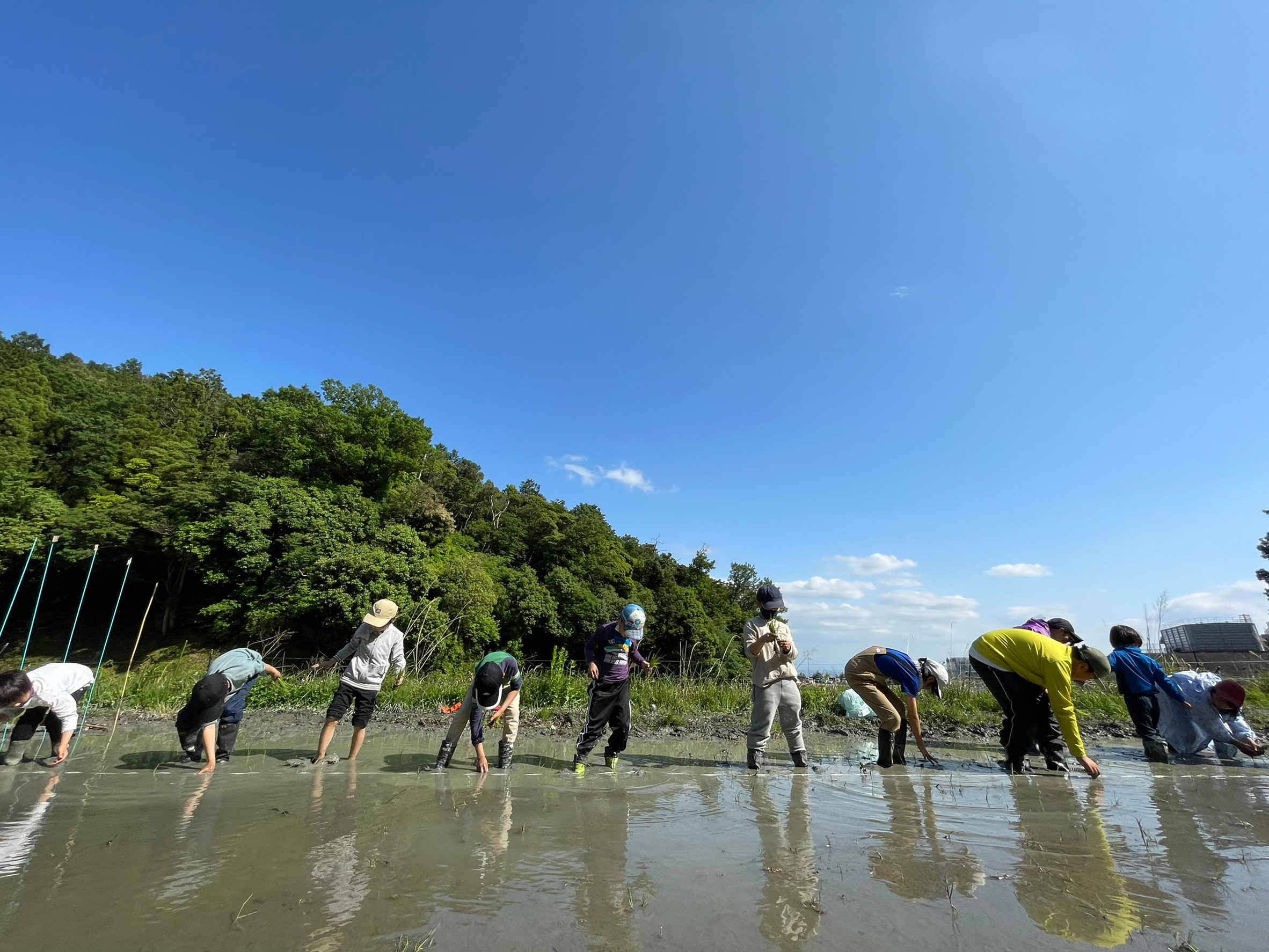 4月に種まきをしたお米を一粒一粒丁寧に田んぼに植えていきます!